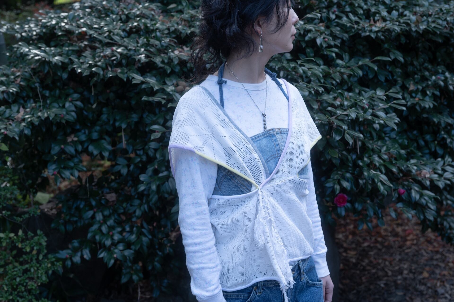 6個のデニムポケットをコラージュして構築したビスチェ。