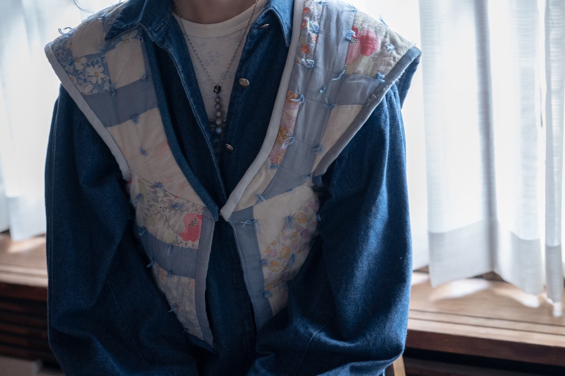 Reworked American vintage quilts into a hanten-inspired vest.