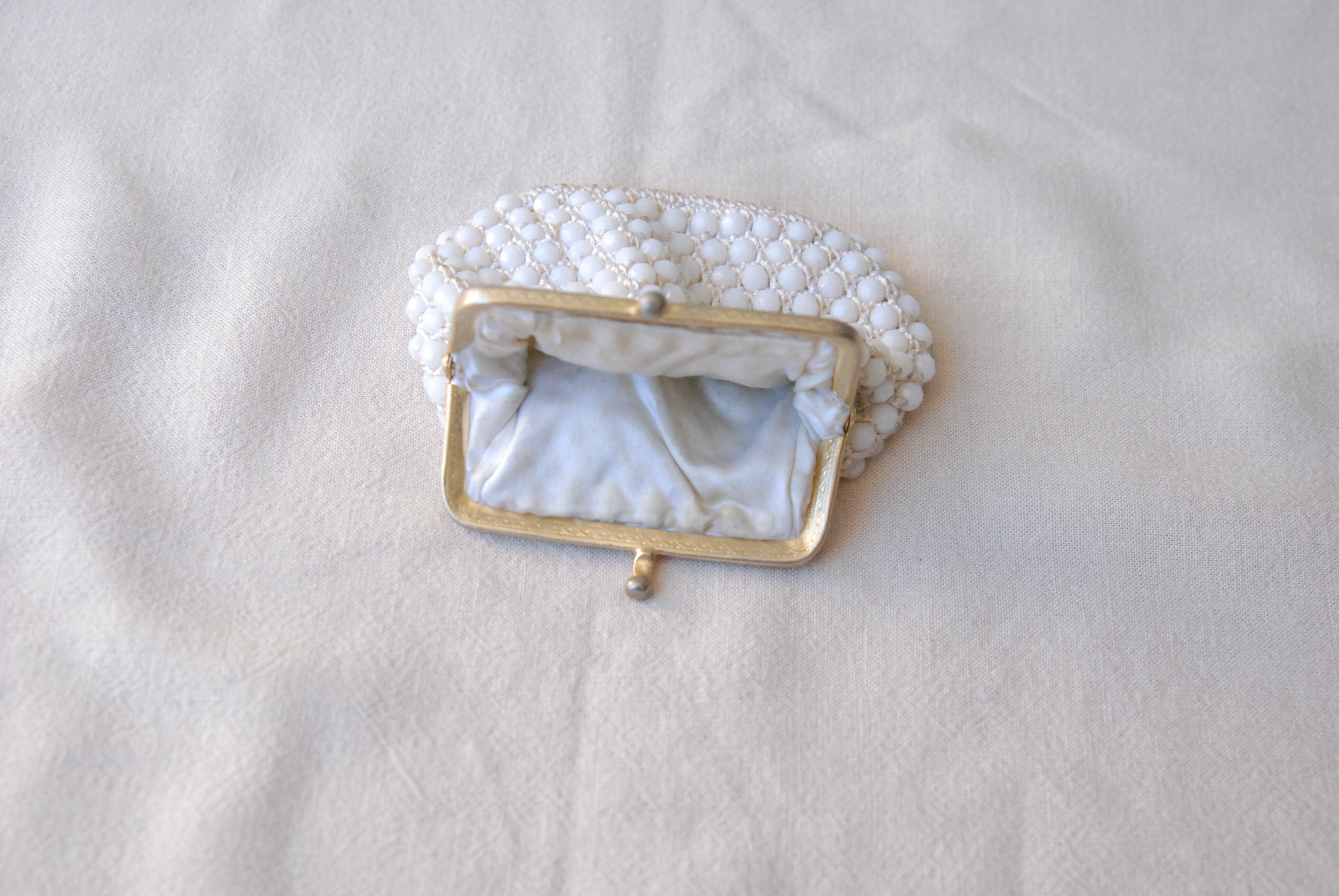 Milky Beaded Coin Purse | Vintage White Beads Coin Purse