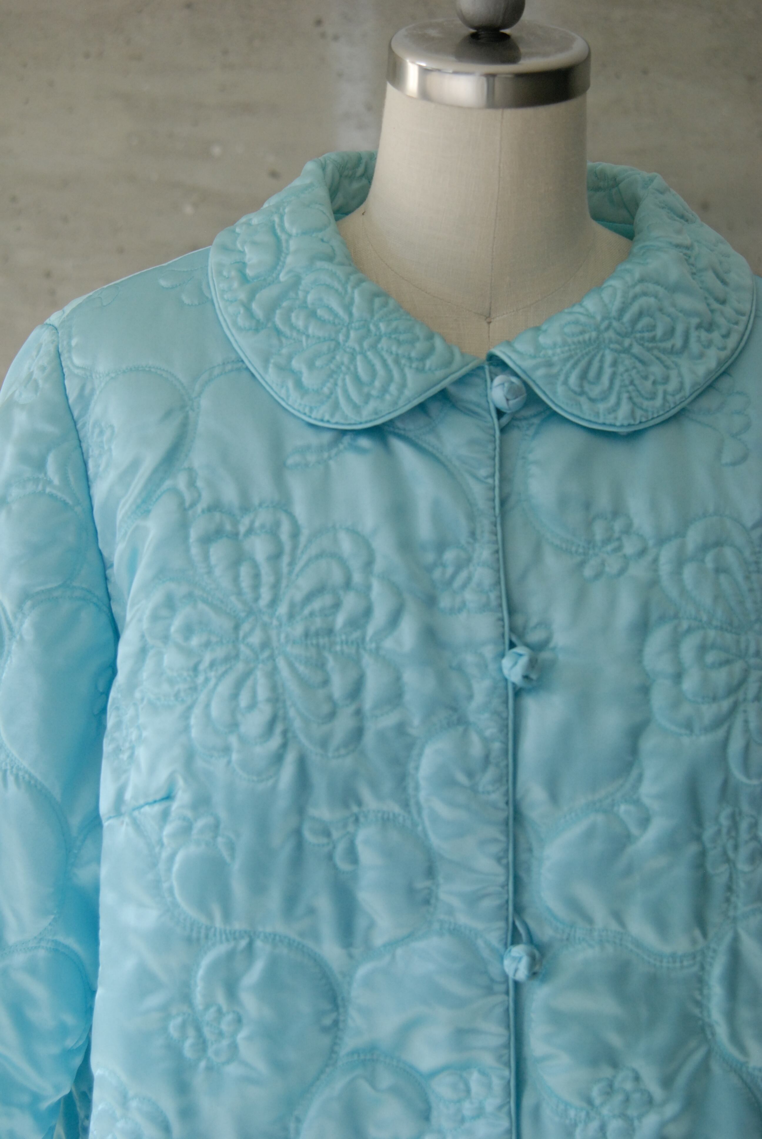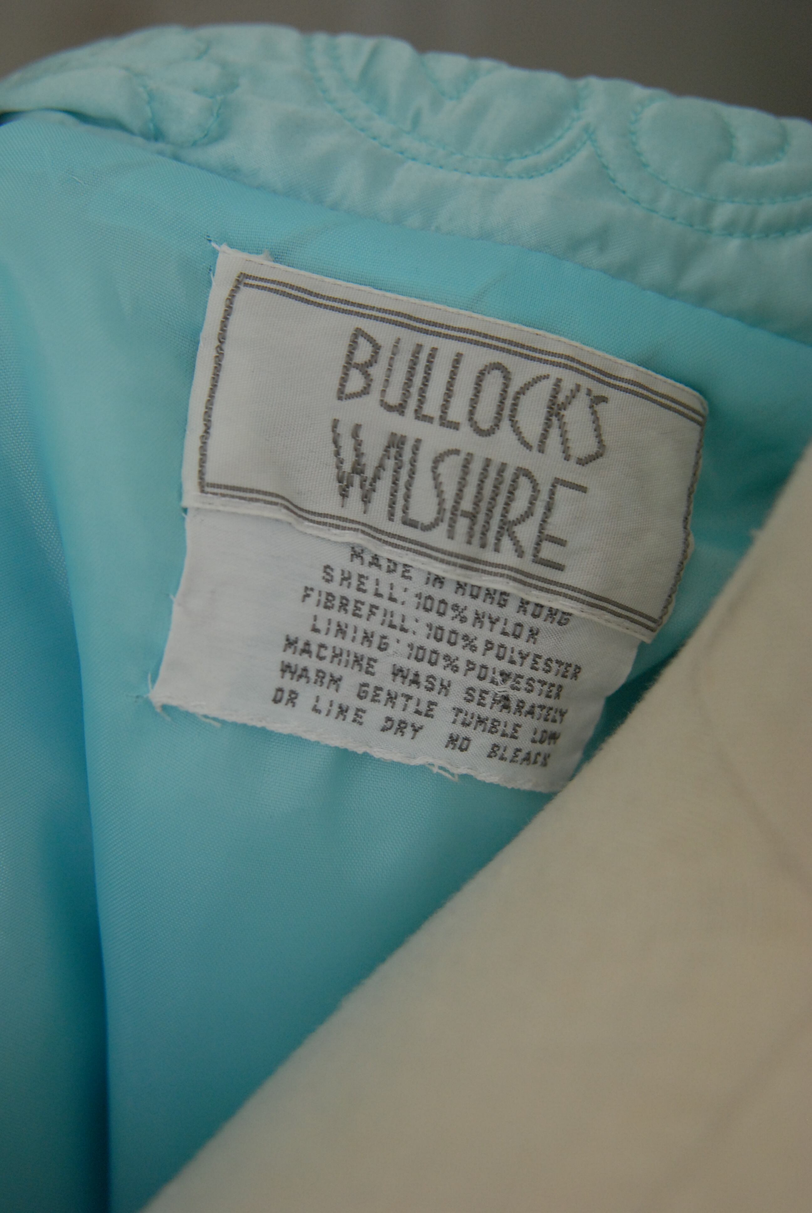 Vintage Bullock's Wilshire Bed Jacket | Pastel Blue Quilted Collared Jacket | Made in Hong Kong |